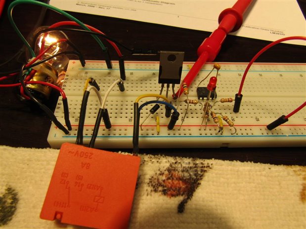 Now that I had a prospective candidate for housing the control for the Automatic Shut Off System Control I began to breadboard and design the power supply and the rest of the control circuitry. The first project was the power supply. I decided to use a design the was introduced on the Forum a year or so ago by one of our Experts, Robert Peter Oakes . The design uses a full wave bridge from the transformer secondary to provide input to a MOSFET that is controlled by an OPAMP. I wanted to be able to accurately adjust and trim the final output so that I could bring the final trickle current to the gel cells to a very low level. The transformer of the cure light as well as the primary support circuitry was left in place. Tests revealed that the 17 VAC of the secondary when rectified and filtered produced an unregulated 22 volts. This provided plenty of room for the MOSFET and OpAmp to work.