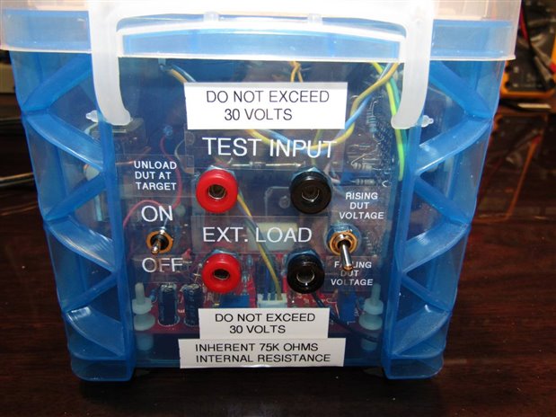 The size of this battery however seemed likely to strain my present test abilities. One thought that seemed to make sense was that I would use a spare UPS Backup unit with a 75 Watt incandescent bulb and use that for the load. The next problem would be how to interface the PDT to the system so that I could time the draining of the battery until the shut off voltage (which I didn't know) of the UPS was reached.