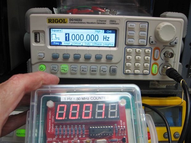 The unit worked pretty much as would be expected for a $7.50 kit that had been modified by an old tinker. The pre-amp must have introduced a little noise to the PIC input which the PIC tries to decode so the unit does not stay at zero when no input is present but reads around 150 Hz. The input voltage sensitivity is satisfactory and goes down to 500 mV on moderate to low frequencies and as low as 200 mV at the higher frequencies. The unit will read only down to about 500 Hz as compared to 1 HZ when the input was connected directly to the RA4 input of the PIC. This is undoubtedly caused by the increasing impedance of the 47 nF capacitor in the pre-amp input at these low frequencies. As I continue to play with this unit I hope to make some minor improvements. The crystal oscillator seems to work very well with some crystals and not so well with others. I will also be investigating this problem. The oscillator problem always existed but it seems to have gotten worse with the pre-amp modification so this warrants additional investigation.