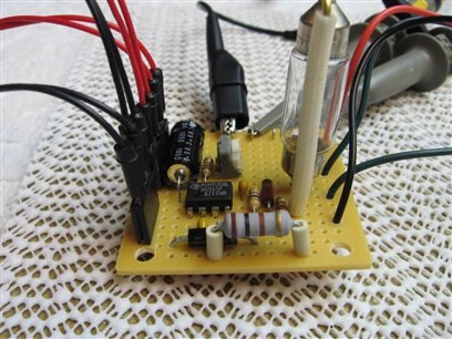 As I was finishing bread boarding and testing the circuit I realized that it would provide an easy platform for testing a Zenner Diode too. This is simply accomplished by connecting the diode cathode to the Drain Clip and the diode anode to the Source Clip. The MOSFET power supply is then slowly increased from zero volts and the oscilloscope channel two is watched for the point where the voltage plateaus due to the breakdown of the zenner junction. Current through the zenner is limited by the 12 volt load bulb but it is still important not to turn the voltage unnecessarily high.