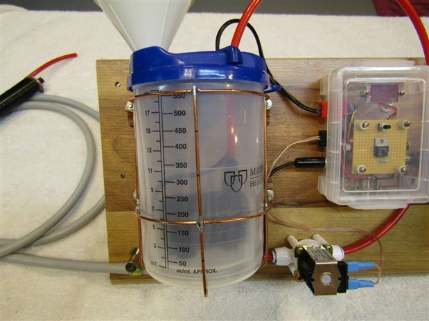 I can see room for many improvements. The parts that I ordered and received did not meet my imagined specifications. For example the pump could have a little more power and the solenoid draws too much current. While the batteries will be heavy enough to deal with the present solenoid, ideally, I should be able to find one that uses 200 mA or less instead of the current 400+ mA. I have made the reservoir and hand cord easy to disassemble for cleaning but improvements can be made. The plugs that were used on the pump and the solenoid were not polarized. While this will not affect the solenoid it is important the the pump spin in the correct direction for maximum efficiency. I have marked the non-polarized plugs but someone other than me might miss this detail. For the time being however Mom is happy and after the newness wears off she too will have some good suggestions for her sonny boy on how he can make it better.