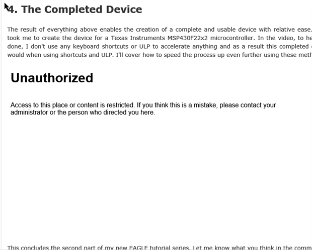 I've solved this for those blog posts - all I've done to solve this is to move the video records Creating a device in Autodesk EAGLE & Creating a device in Autodesk EAGLE into a different space. They were originally created in your blog.