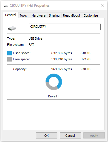 The other issue with this type of application using CircuitPython on the FunHouse is that I don't end up with much file storage space for pictures. The FunHouse has a 4MB Flash memory, but with CircuitPython loaded there is only about 1 MB left free for applications.