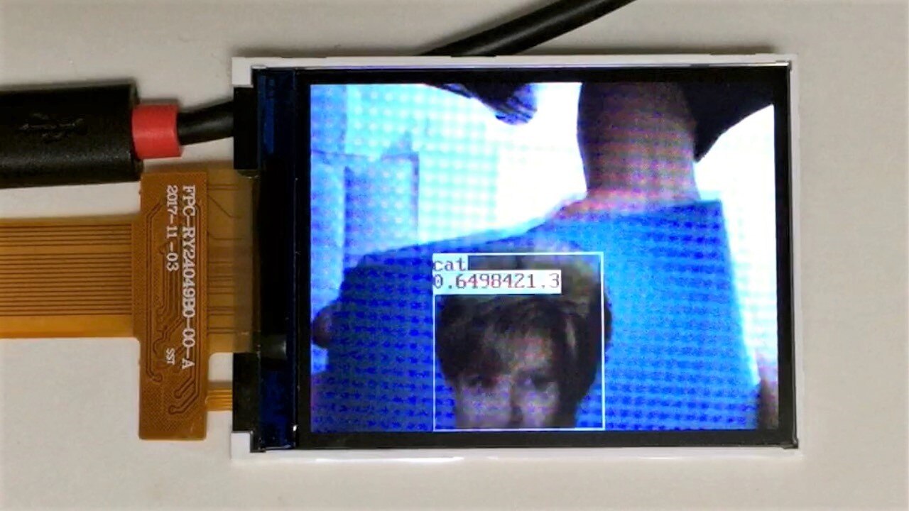 I recorded a short video of the Maixduino classifying objects.  Unfortunately, I still have not figured out how to get a decent recording from these small LCD displays so the images are not very good.  I used a photo of a woman and a dog to test the classifier.  You can see that if the woman's full face is not in the frame that she is mis-classified as a dog or a cat instead of a person.