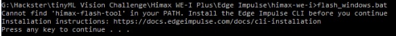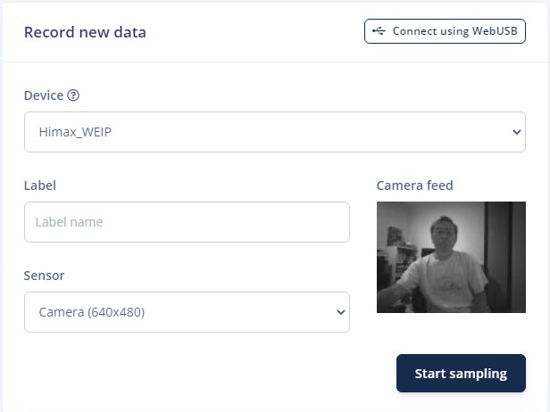The board is fully supported by Edge Impulse, so the quickest way to get started is to download the data capture firmware from Edge Impulse and flash it using their loader script. To run the scripts, you need to have the Edge Impulse CLI installed. This is well documented in their getting started guide https://docs.edgeimpulse.com/docs/himax-we-i-plus .