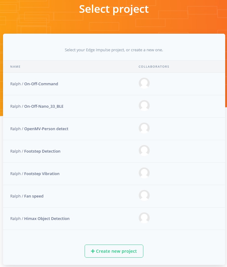 The next step is to log into edgeimpulse.com and create a new project. In this case I created one named Himax Object Detection.