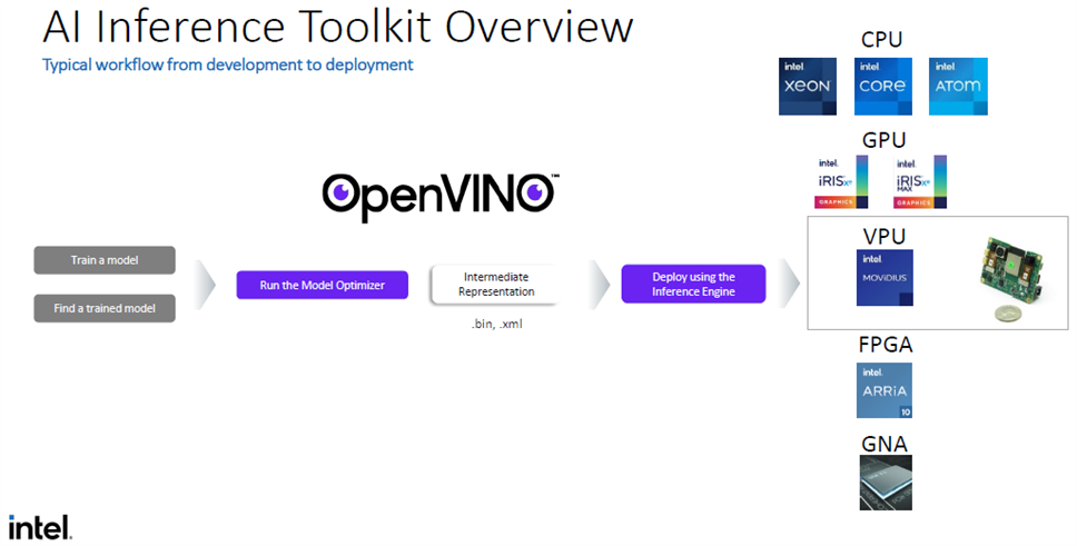 - OpenVINO (Open Visual Inference and Neural network Optimization) now has a fully developed cloud based framework that supports all of Intel's hardware AI platforms. devcloud.intel.com/edge/