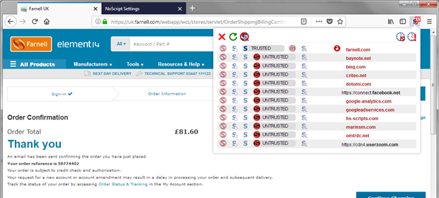 The problem isn't my internet connection, computer, or browser, it's definitely a problem with the Farnell website.