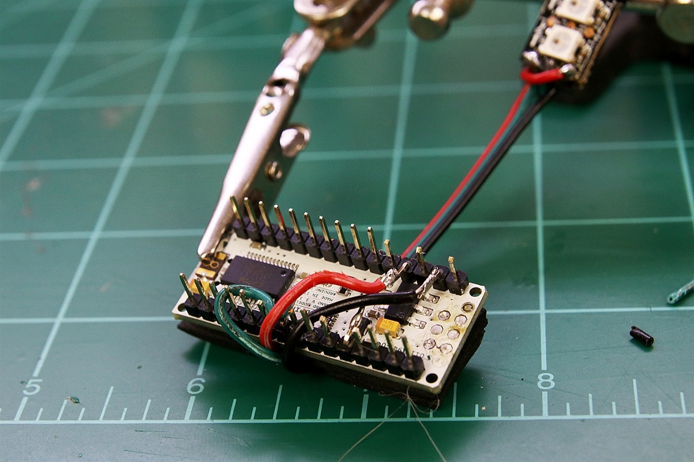 In an attempt to make the install even more low profile, I decided to bend over the pins I would be using, which would allow me to lay the wires down instead of having them stick up and possibly create shadows. As I mentioned earlier, this was a mistake, and I should have desoldered all of the pins from the board, and soldered the wiring directly to the pads. This would have resulted in a much cleaner install, but I guess you live and learn, and in reality, no one will see the mess that is to come once the lantern is finished.