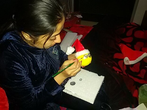 We setup everything but the christmas tree was a bit empty. I bought some decorations and we made some our own as well. Since we are minion themed hence it seemed fit to make our minion ornaments.
