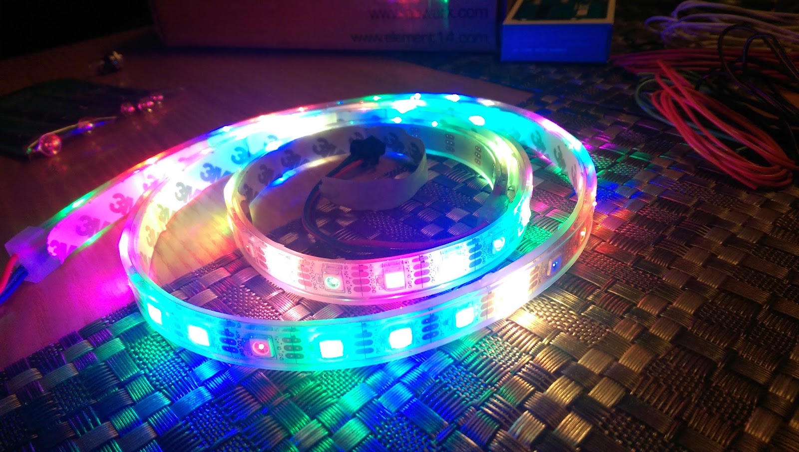 Thanks to the help from Robert Peter Oakes I was able understand what power requirements I had, and finally got to power something more flashy! I used the Adafruit Neopixel Library and had the lights working in minutes! They are extremely bright and this string of 60 LEDs alone will definitely be able to light up my apartment!