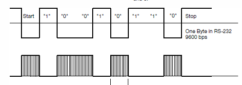 like this where you have a carrier for the "0" and no carrier for the ones, there are many ways to modulate, this is just one of them