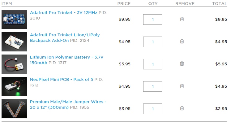 So far all I have are the fabric bits, the soldering gun, and a cart full of things online at Adafruit. I was wondering if someone might be able to discern if this is all I need: