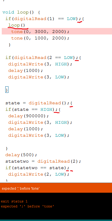 I'm a noobie in arduino stuff but..  why IDE does this? even if I put the ";" before tone it prints the same error