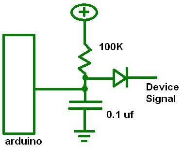 dougw  Since I am completely new to caps, how to I connect it? Pull up at the + side followed by a diode that connects to the Arduino? Thedanks for your help! I really hope that this should work