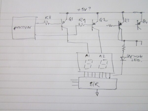 What might be useful to know, is that the shift register circuit is not only used for the display, but also for some of the LED's.