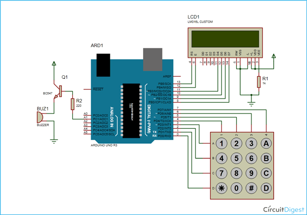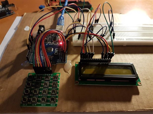 I've tried to lay the circuit out in a way that's straightforward to follow, but as I say, i'm pretty new to this.  I found the circuit diagram hard to follow, as some of the connections shown differed slightly with my hardware (I tried to get as close to what the original poster listed as possible), especially the keypad.  I suspect I've connected it up wrong, or put a component the wrong way round.  I've dont some fault finding with my multi meter, and power seems to be getting to the components.