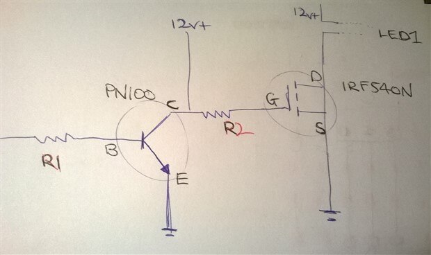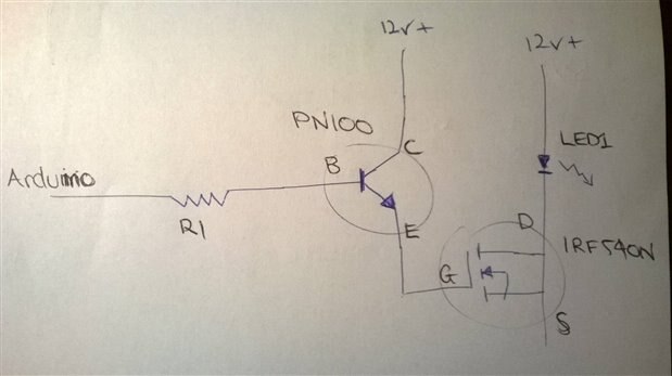 Bread Board concept drawing based off pin outs of 2N7000 and IRF540N: