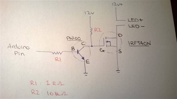 Doug suggested a 2k2 resistor to drive the FET, hence R2 should be 2k2.