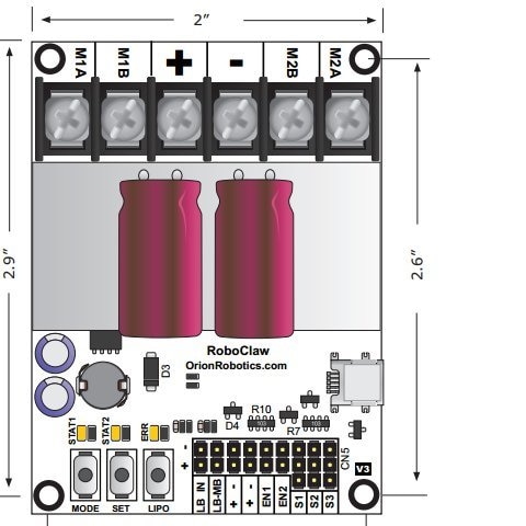 analogue into an arduino a-star controlling a robo claw controller in encoder mode hooked up exactly like in page 48 in the orion manual