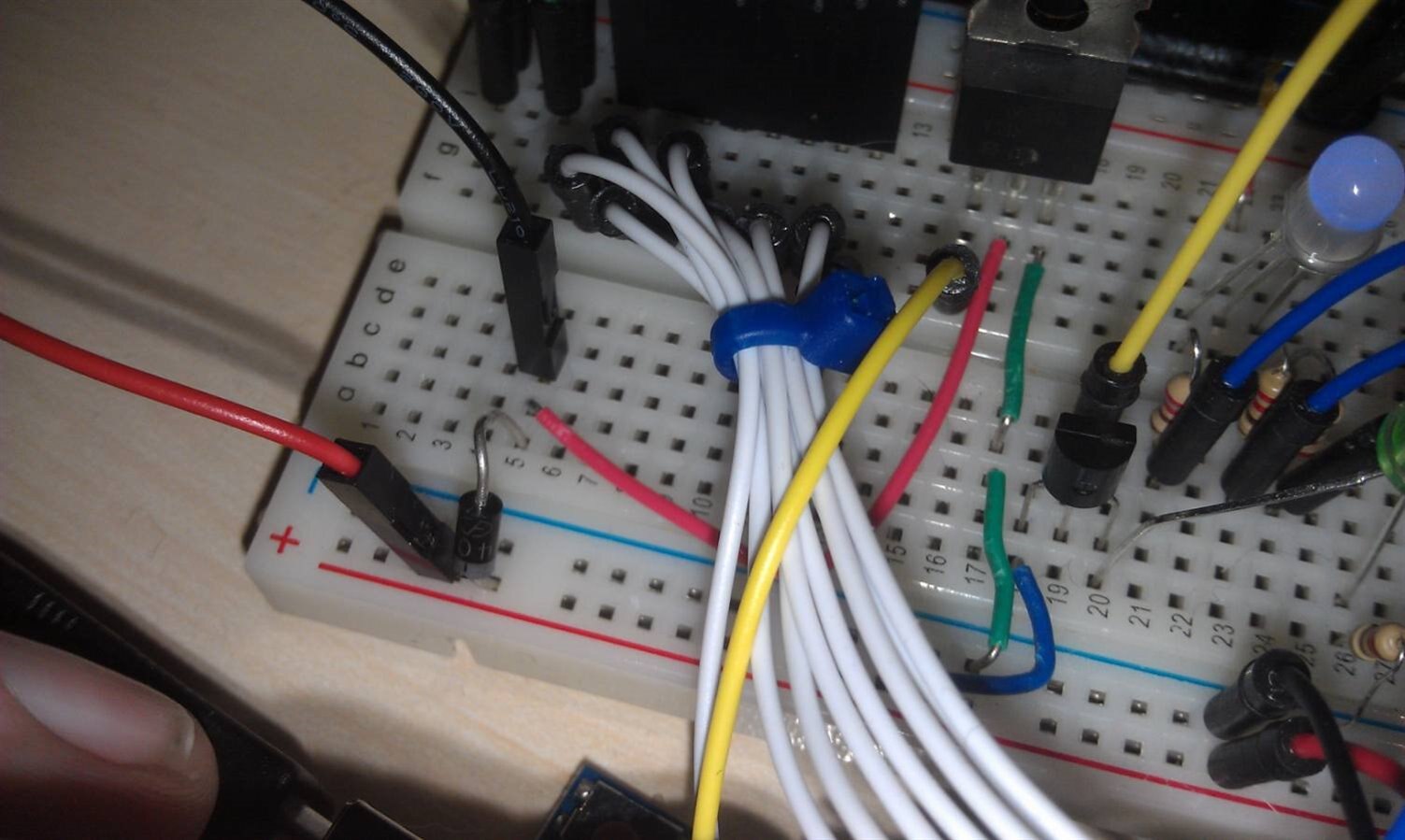 The motor is connected to the black/red wires to the left, and have a diode as fly back.