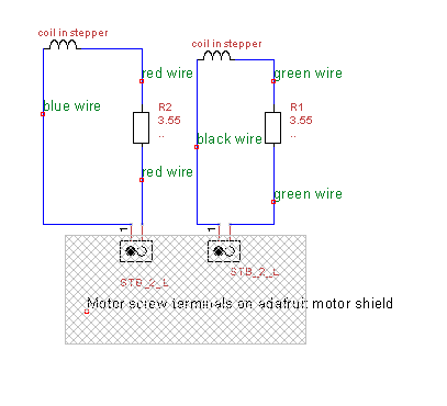 I've got two adafruit motor shields and three steppers. The steppers has a rated current of 2.5 A and a phase resistance of 1.25 ohms.