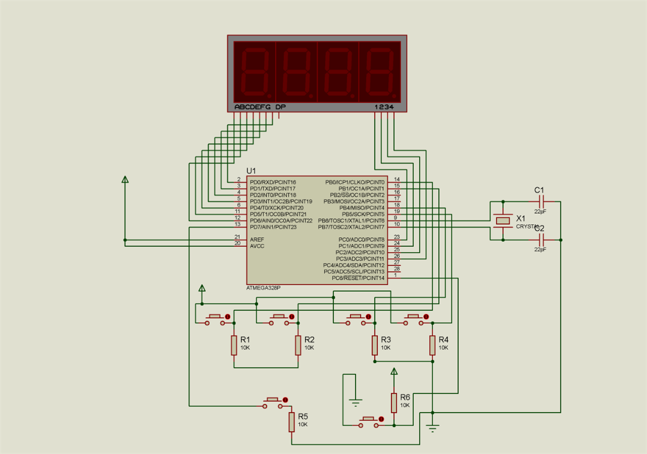 I have made the following circuit, can anyone please tell me why the seven segments are flickering. I have used multiplexing, don't tell me it is because of that. I have tried it prototyping on an arduino uno and it worked perfectly.SO its not because of the multiplexing!! and its not the code. I think something is interfering or resetting the microcontroller because it does not store the values on the seven segments.The motors on the right are not connected. Any clue what is wrong?