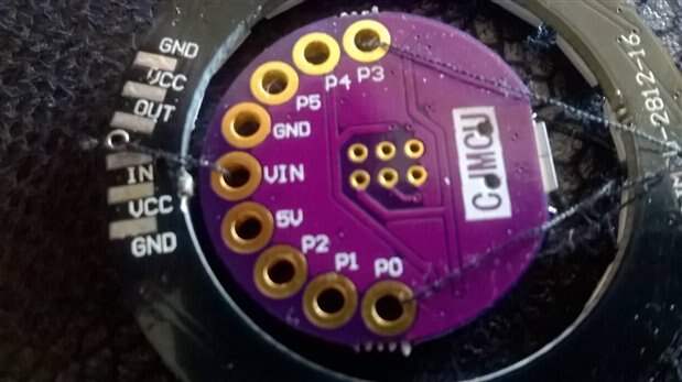 Finally, connect one of Lily's pins PX to NeoPixel's IN. I'm not sure if any pin will work, but that's easily tested.