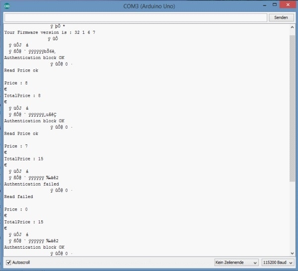 /* * RFID/NFC module for Arduino. * Calculation the total price */ uint8_t dataRX[35];//Receive buffer. uint8_t dataTX[35];//Transmit buffer. uint8_t _UID[4];// stores the UID (unique identifier) of a card. uint8_t keyAccess[] = {0xFF, 0xFF, 0xFF, 0xFF, 0xFF, 0xFF } ;// stores the key or password. uint8_t address = 0x04;//Address to read. uint8_t ATQ[2];//Answer to request uint8_t state;//state of the process uint8_t aux[16];//Auxiliar buffer. unsigned int TotalPrice = 0;// Varialbe void setup() { //Start serial port 115200 bps: Serial.begin(115200); delay(100); Serial.print("Welcome dear customer"); delay(1000); //!It is needed to launch a simple command to sycnchronize getFirmware(); configureSAM(); } int thisByte = 128; void loop() { Serial.print("\n"); ///////////////////////////////////////////////////////////// //Get the UID Identifier init(_UID, ATQ); Serial.print("\n"); ///////////////////////////////////////////////////////////// //Auntenticate a block with his keyAccess state = authenticate(_UID, address, keyAccess); Serial.print("\n"); if ( state == 0) { Serial.println("Authentication block OK"); } else { Serial.println("Authentication failed"); } ///////////////////////////////////////////////////////////// //Read from address after authentication state = readData(address, aux); Serial.print("\n"); if (state == 0) { Serial.println("Read Price ok "); } else { Serial.println("Read failed"); } Serial.print("\n"); Serial.print("Price : "); print(aux ,1); Serial.write(thisByte); Serial.print("\n"); delay(2000); // Tota l price TotalPrice = TotalPrice + aux[0]; Serial.print("TotalPrice : "); Serial.println(TotalPrice,1); Serial.write(thisByte); delay(1000); } //********************************************************************** //!The goal of this command is to detect as many targets (maximum MaxTg) // as possible in passive mode. uint8_t init(uint8_t *UID , uint8_t *ATQ) //! Request InListPassive { Serial.flush(); dataTX[0] = 0x04; // Length lengthCheckSum(dataTX); // Length Checksum dataTX[2] = 0xD4; dataTX[3] = 0x4A; // Code dataTX[4] = 0x01; //MaxTarget dataTX[5] = 0x00; //BaudRate = 106Kbps dataTX[6] = 0x00; // Clear checkSum position checkSum(dataTX); sendTX(dataTX , 7 ,23); for (int i = 17; i < (21) ; i++){ _UID[i-17] = dataRX[i]; UID[i-17] = _UID[i-17]; } ATQ[0] = dataRX[13]; ATQ[1] = dataRX[14]; if ((dataRX[9]== 0xD5) & (dataRX[10] == 0x4B) & (dataRX[11] == 0x01)) { return 0; } else { return 1; } } //********************************************************************** //!A block must be authenticated before read and write operations uint8_t authenticate(uint8_t *UID, uint8_t blockAddress, uint8_t *keyAccess) { dataTX[0] = 0x0F; lengthCheckSum(dataTX); dataTX[2] = 0xD4; dataTX[3] = 0x40; // inDataEchange dataTX[4] = 0x01; //Number of targets dataTX[5] = 0x60; // Authentication code dataTX[6] = blockAddress; for (int i = 0; i < 6 ; i++) { dataTX[i + 7] = keyAccess[i]; } dataTX[13] = UID[0]; dataTX[14] = UID[1]; dataTX[15] = UID[2]; dataTX[16] = UID[3]; dataTX[17] = 0x00; checkSum(dataTX); sendTX(dataTX , 18 ,14); if ((dataRX[9]== 0xD5) & (dataRX[10] == 0x41) & (dataRX[11] == 0x00)) { return 0; } else { return 1; } } //********************************************************************** //!Write 16 bytes in address . uint8_t writeData(uint8_t address, uint8_t *blockData) //!Writing { Serial.print(" "); dataTX[0] = 0x15; lengthCheckSum(dataTX); // Length Checksum dataTX[2] = 0xD4; dataTX[3] = 0x40;//inDataEchange CODE dataTX[4] = 0x01;//Number of targets dataTX[5] = 0xA0;//Write Command dataTX[6] = address; //Address for (int i = 0; i < 16; i++) { dataTX[i+7] = blockData[i]; } dataTX[23] = 0x00; checkSum(dataTX); sendTX(dataTX , 24 ,14); if ((dataRX[9]== 0xD5) & (dataRX[10] == 0x41) & (dataRX[11] == 0x00)) { return 0; } else { return 1; } } //********************************************************************** //!Read 16 bytes from address . uint8_t readData(uint8_t address, uint8_t *readData) //!Reading { Serial.print(" "); dataTX[0] = 0x05; lengthCheckSum(dataTX); // Length Checksum dataTX[2] = 0xD4; // Code dataTX[3] = 0x40; // Code dataTX[4] = 0x01; // Number of targets dataTX[5] = 0x30; //ReadCode dataTX[6] = address; //Read address dataTX[7] = 0x00; checkSum(dataTX); sendTX(dataTX , 8, 30); memset(readData, 0x00, 16); if ((dataRX[9]== 0xD5) & (dataRX[10] == 0x41) & (dataRX[11] == 0x00)) { for (int i = 12; i < 28; i++) { readData[i-12] = dataRX[i]; } return 0; } else { return 1; } } //********************************************************************** //!The PN532 sends back the version of the embedded firmware. bool getFirmware(void) //! It is needed to launch a simple command to sycnchronize { Serial.print(" "); memset(dataTX, 0x00, 35); dataTX[0] = 0x02; // Length lengthCheckSum(dataTX); // Length Checksum dataTX[2] = 0xD4; // CODE dataTX[3] = 0x02; //TFI checkSum(dataTX); //0x2A; //Checksum sendTX(dataTX , 5 , 17); Serial.print("\n"); Serial.print("Your Firmware version is : "); for (int i = 11; i < (15) ; i++){ Serial.print(dataRX[i], HEX); Serial.print(" "); } Serial.print("\n"); } //********************************************************************** //!Print data stored in vectors . void print(uint8_t * _data, uint8_t length) { for (int i = 0; i < length ; i++){ Serial.print(_data[i], HEX); Serial.print(" "); } Serial.print("\n"); } //********************************************************************** //!This command is used to set internal parameters of the PN532, bool configureSAM(void)//! Configure the SAM { Serial.print(" "); dataTX[0] = 0x05; //Length lengthCheckSum(dataTX); // Length Checksum dataTX[2] = 0xD4; dataTX[3] = 0x14; dataTX[4] = 0x01; // Normal mode dataTX[5] = 0x14; // TimeOUT dataTX[6] = 0x00; // IRQ dataTX[7] = 0x00; // Clean checkSum position checkSum(dataTX); sendTX(dataTX , 8, 13); } //********************************************************************** //!Send data stored in dataTX void sendTX(uint8_t *dataTX, uint8_t len