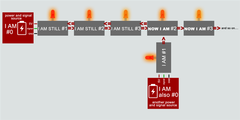 i looked into I2C, and as i understand you communicate by addresses, but in this case the state of each component is determined by it's location relative to the source.