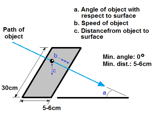 measure the speed, angle and height of a flying object over a 6 x 30 cm surface.