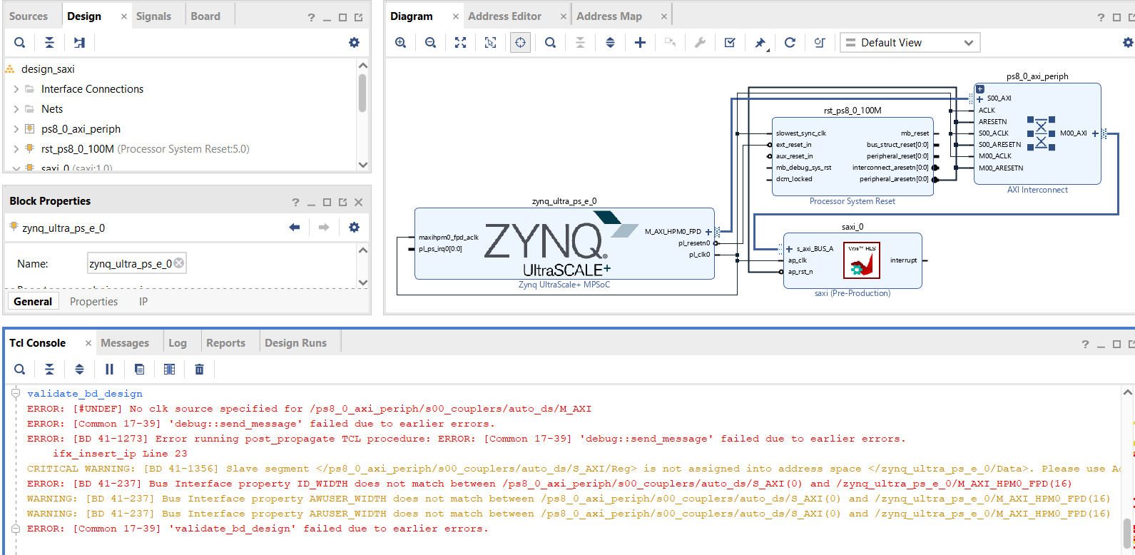 No I am trying to connect a PL that I created on Vitis HLS, to the zynq ultra scale MPSOC. When I add both of them and simply click run automation , I get the following errors.