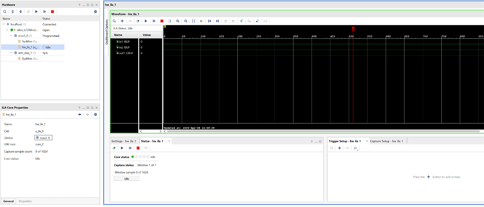 WARNING: [Labtools 27-3413] Dropping logic core with cellname:'u_ila_0' at location 'uuid_23E7D65A79BC59F7BC47406C1714DFAE' from probes file, since it cannot be found on the programmed device.
