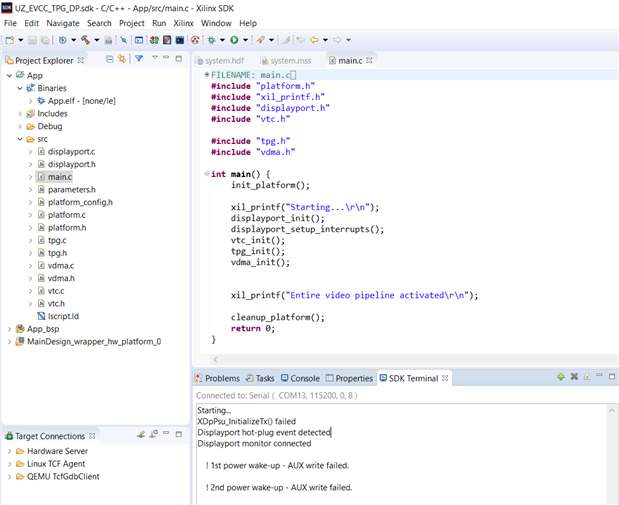 The SDK app was based on the code for Ultra96 from Adam Taylor with the proper modifications for the number of lanes.