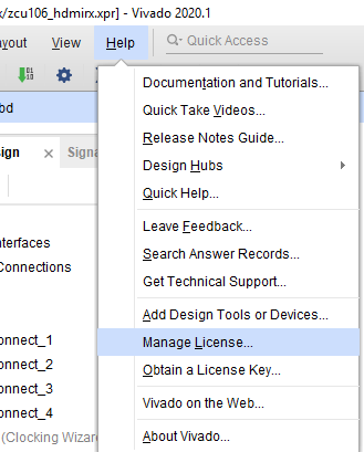 We used to ship licenses for "Design" Edition as that was the only way to use the 7EV MPSoC.  Once Xilinx moved that SoC into what I would call "WebPack" we stopped including that license.  And actually, since the time when Xilinx did that, running the DisplayPort design just now is the first time I ran into a license issue (again, not installing licenses on my machine).  Also, it seems that the QuickStart card was never updated.  I've noted that.  I currently run 2020.1 Vitis install (Vivado / Vitis) on my Windows Machine for validation and quick tests.  I never installed a license, as I try to mimic what customers might be doing and it is hard to see that when you install a full up developer license or one of the other "give you every feature" license.  Regardless, on my windows machine, I was able to create a Vivado output using the Xilinx ZCU106_hdmirx design from the VCU TRD without issue. Extract, run script, check for output.  Please MIND the path length...that can cause you issues under Windows.
