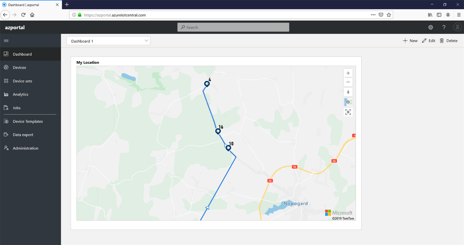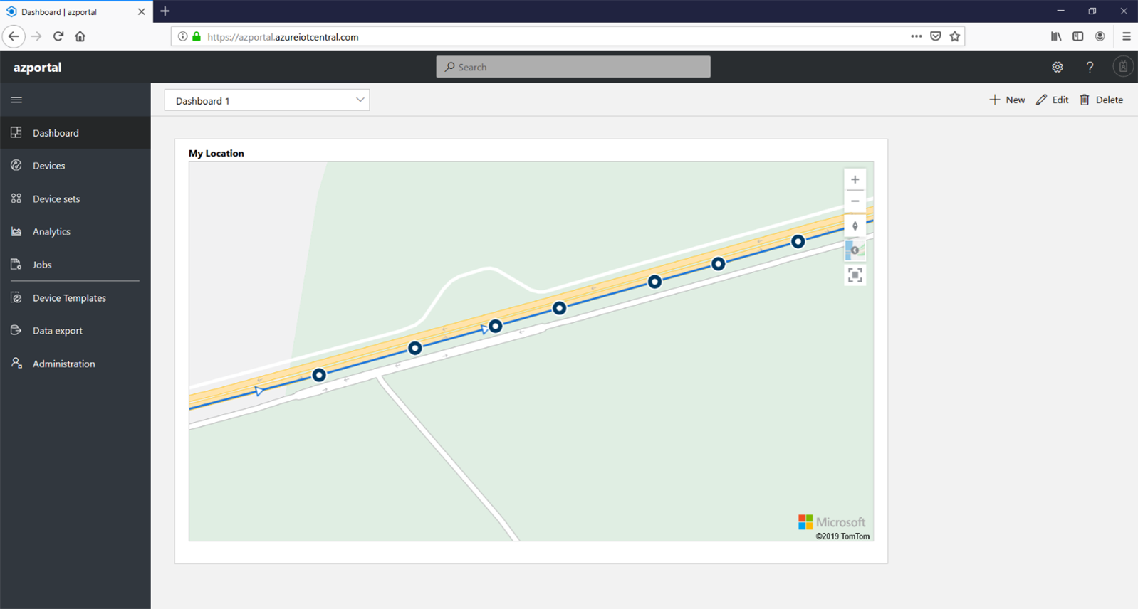 This sample demonstrates how to get data from GPS and put it to IoT Central and display on Map. This sample is modyfication of AzureIoT sample. Hardware used Azure Sphere AVNET + GPS NEO-6M.