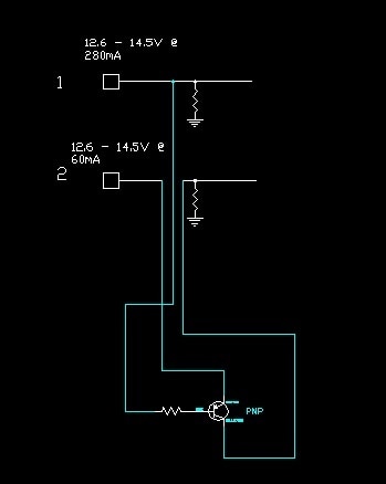 The nearest standard value is 10k. If we use that in our calculations the base current at 12.6V supply is 1.19mA, with 14.5V it goes up to 1.38mA which is fine.