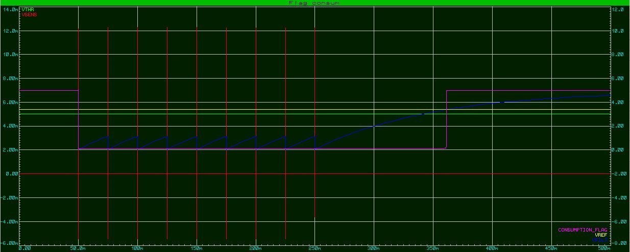 OC comparators: yes, precisely this effect has solved the problematic of making the consumption flag remaining active (low) even at low Duty Cycles, thanks to the quick discharge of the capacitor.