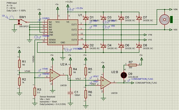 L298 current sensor pin, convert pulsed current signal to consumption flag