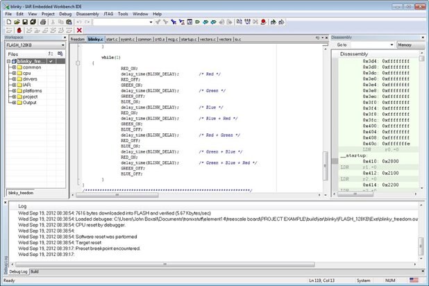 Finally it was time to open IAR and the blinky code. The quick-start guide will get you through to debugging and running - phew! We have blinking. At this point I'll check out and get back to work, returning with another example.