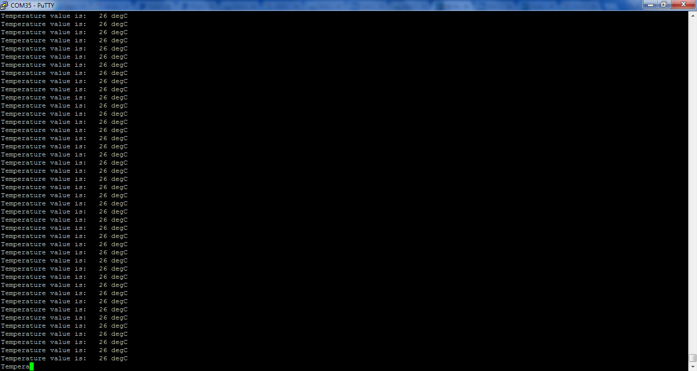 After compiling and executing the code you can see the output in an hyper terminal with baud rate of 19200 as shown below: