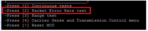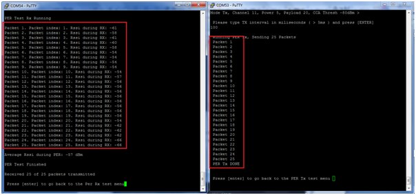 Now press ‘2’ on both terminals to run as “Packet Error Rate Test”