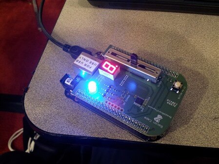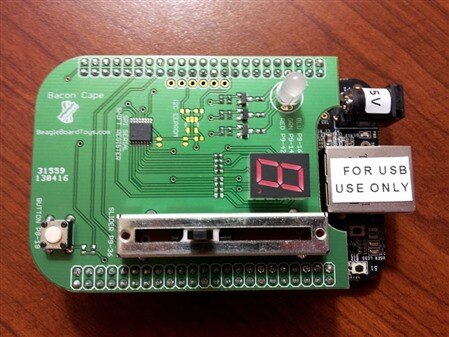 The following day after all sessions were over, Jason kindly gave me a BeagleBone Black and BaconCape that was used in the workshop. I already have a BeagleBone Black so I thought I would pass the favor along and give it for free it to a Community member: