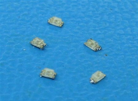 I used thesethese 0603 leds, not fun to solder. I bought some 0402 replacement resistors too, but looks like I don't need them - good thing, as I wasn't looking forward to soldering those..