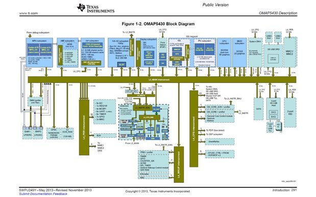 I haven't yet checked how the two Cortex-M4 cores in OMAP5 interface to the dual Cortex-A15, but hopefully it's a high bandwidth interface.  Here for all bed-time readers' delight is a link to TI's 6105-page OMAP543x Technical Reference Manual.