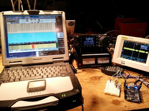 Using a BeagleBone Black instead of the teensy opens up more useful spectrum. The DAC on the Teensy is limited to mostly audio frequency ranges, but the PRU can easily generate a smooth 2.5 MHz carrier. A simple R2R DAC isn't the cleanest , but generates acceptable signal that was capable of being received a few meters from the IC-7000 without any amplifier.