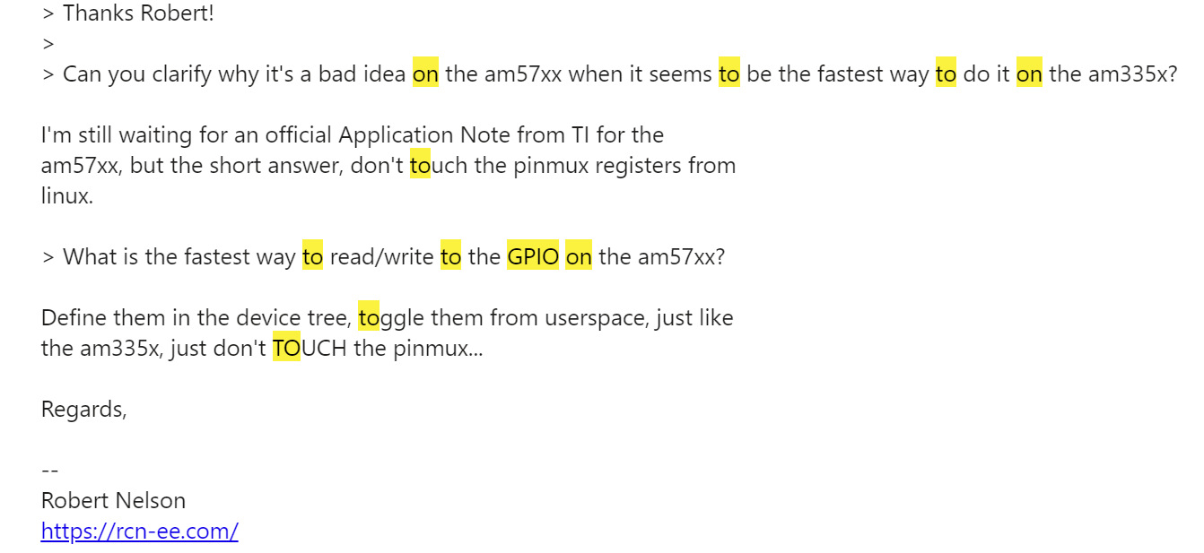 Long story short, for what would have been a high-speed way of interfacing (by directly controlling registers) it's quite hard, and I don't know of a good library of code for it today, and mine is nowhere near complete : ( There's some excellent information here that could help too from Sean_Miller I've not had a chance to experiment with this yet, because I'd sadly put all my hopes in doing it by controlling registers initially BeagleBone AI Survival Guide V3.18: PWM, I2C, Analog/Digital Read/Write, Vision AI, Video Text Overlays, Audio, & Hardware