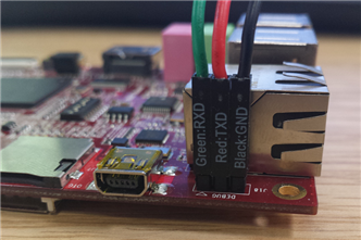 Use the UART8000-U to connect the RIoTboard to your PC as in the image. The debug header you are looking for (J18) is tucked away in a corner between the Ethernet port and the USB OTG we used to flash the board