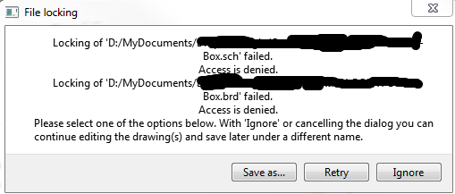 When updated to 7.7 I can't save or open files. When opening it says: Locking of  (folder location) schem_2.sch failed. Access is denied.