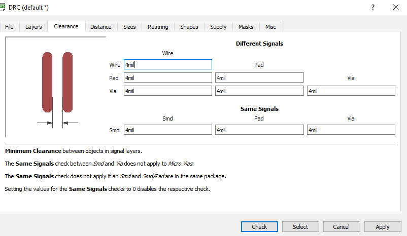 The W5500 gives me clearance errors between all pads, while the distance between the pads is well within the allowed pad-distance of the DRC. distance between pads is 7.9mm.